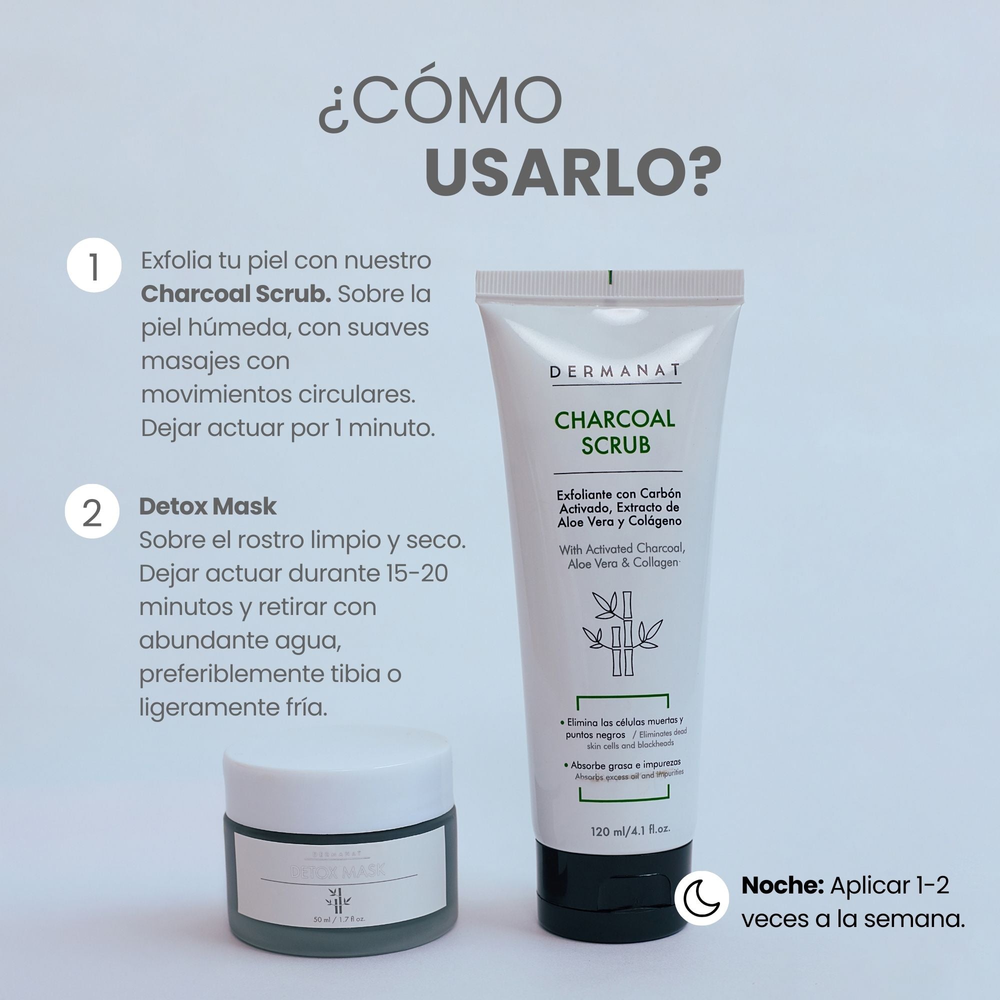 Desintoxica tu piel y libera tus poros con este kit de exfoliante y mascarilla con Carbón Activado que te dejará la piel como nueva! Recomendado para pieles mixtas a grasas.