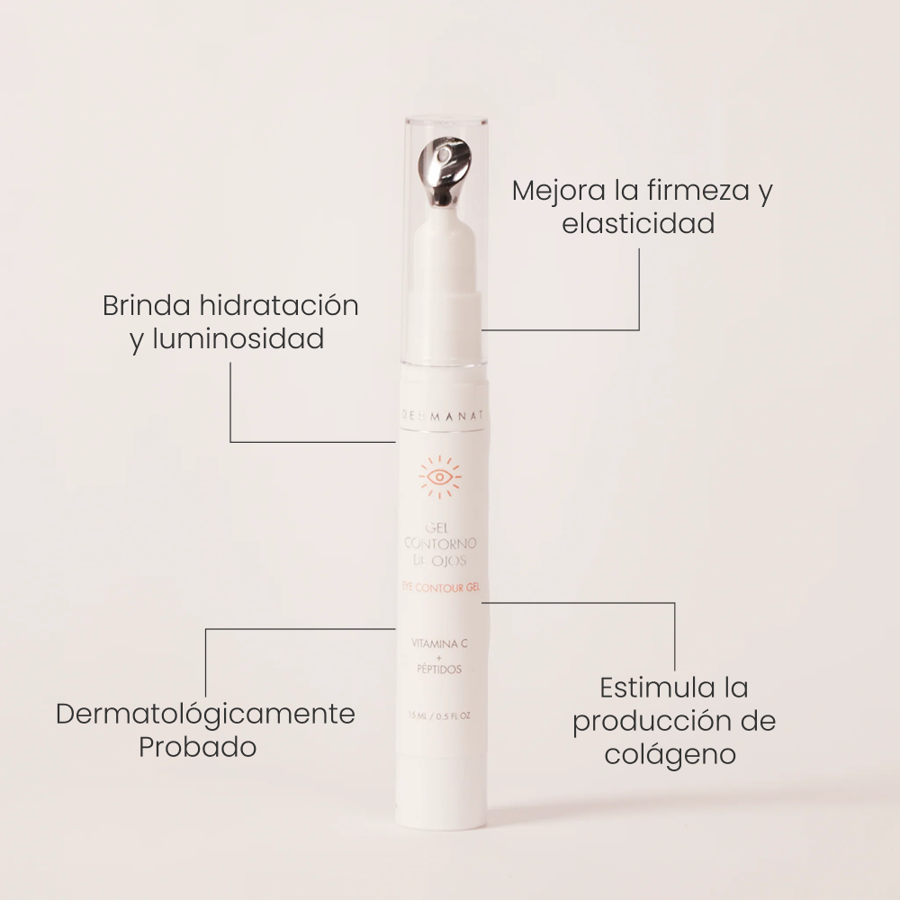 - Gel Contorno de Ojos: Gel refrescante con Ácido Hialurónico, Cafeína y Extractos Naturales que hidrata, descongestiona y ayuda a reducir la apariencia de bolsas y ojeras, dejando la mirada descansada y luminosa.