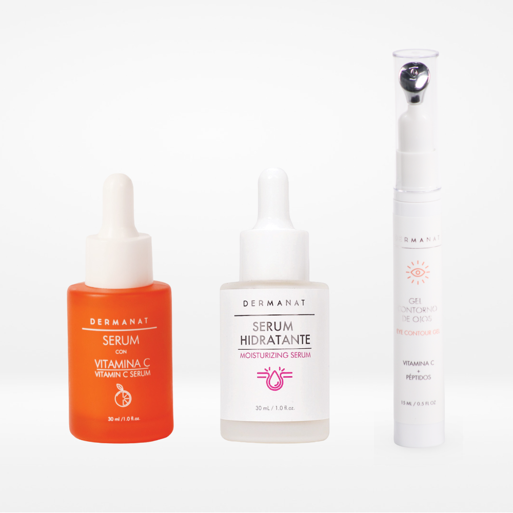 - Serum con Vitamina C: Hidrata, ilumina y unifica el tono de tu rostro con este serum antioxidante.